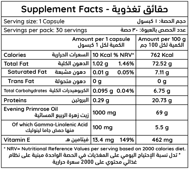 | Evening Primrose Oil | Source of Gamma-Linolenic Acid |