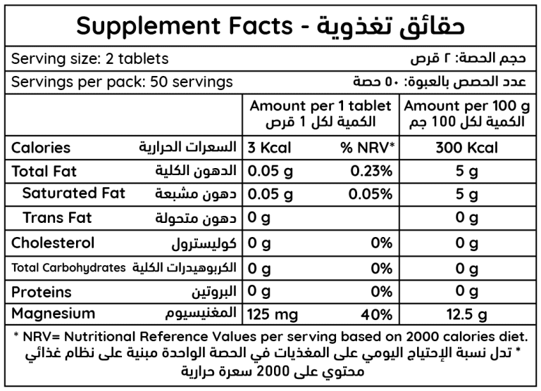 Food Supplement Tablets High Source of Magnesium